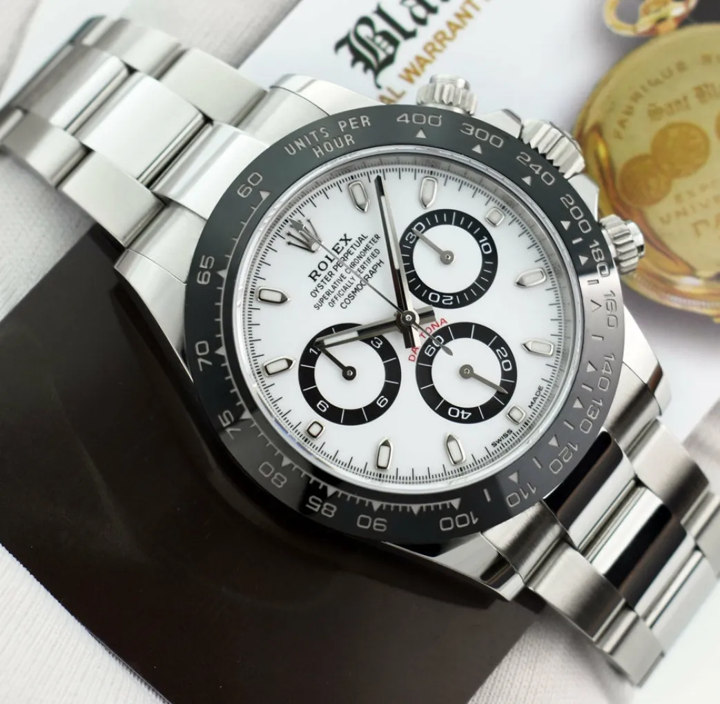 Absolutely Stunning brilliant Rolex Factory White Dial and Ceramic Bezel! This is the 40mm size Stainless Steel Rolex Daytona model 116500LN: This is the style with the Rolex Stainless Steel bracelet. This Rolex is in pristine condition…Priced to sell immediately!