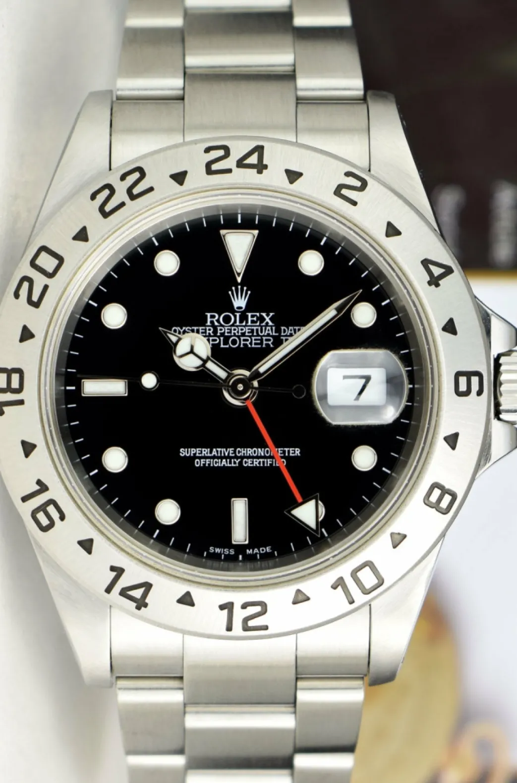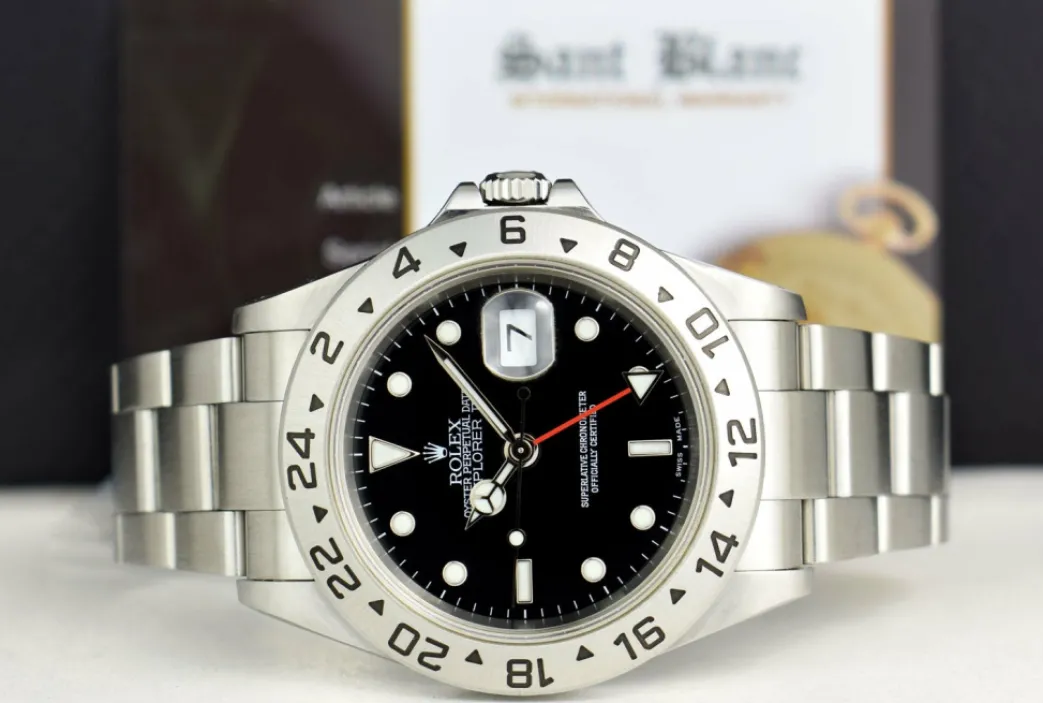 ROLEX SEL – This Explorer II is the model with Solid End Links (SEL)! Absolutely Stunning brilliant Rolex Black Dial! This is the 40mm size Rolex Explorer II model 16570: This is the style with the Rolex Stainless Steel Oyster bracelet. To replace this Rolex has an estimated MSRP of $6,325. This Rolex is in pristine condition…Priced to sell immediately!