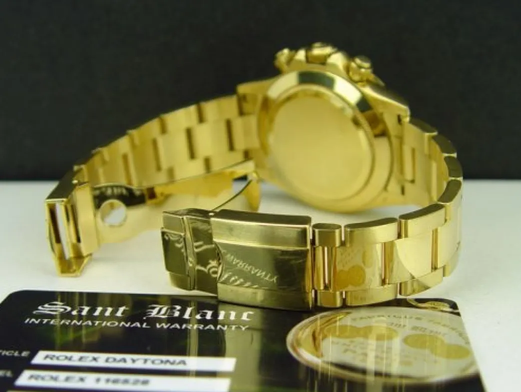 Absolutely Stunning brilliant Rolex White Arabic Dial with Black Sub dials! This is the 40mm size 18kt Yellow Gold Rolex Daytona model 116528: This is the newest style with the Rolex 18kt Gold bracelet. To replace this Rolex has an estimated MSRP of $34,650. This Rolex is in pristine condition…Priced to sell immediately!