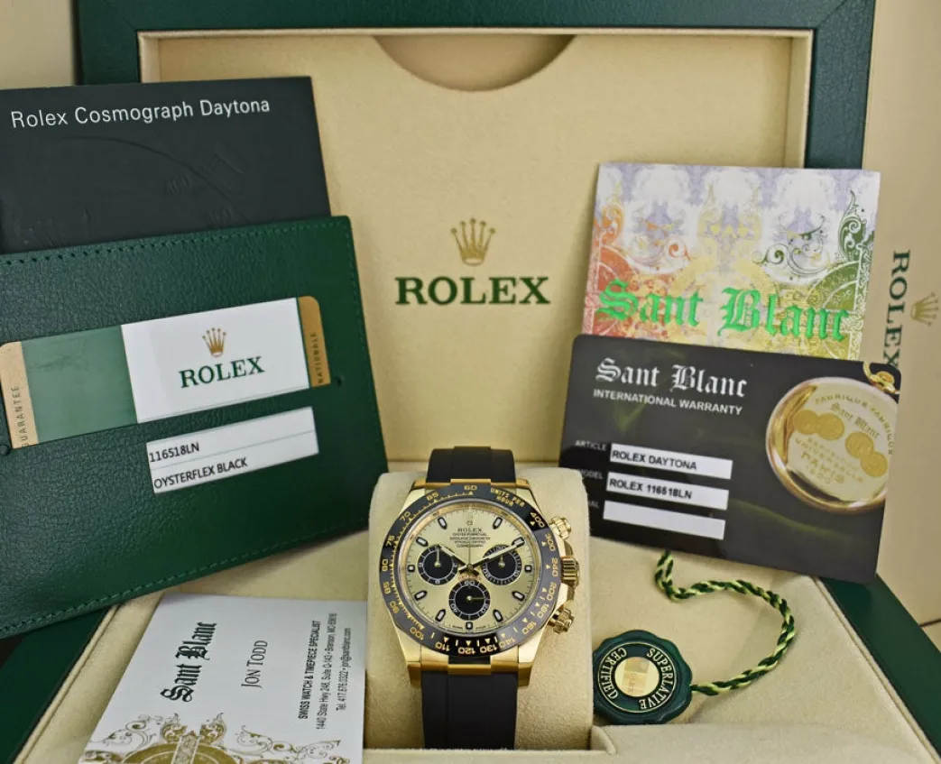 Absolutely Stunning brilliant Rolex Factory Champagne “Paul Newman” Index Dial! This is the 40mm size 18kt Gold Rolex Daytona model 116518LN: This is the style with the Rolex Rubber Oysterflex Strap. This Rolex is in pristine condition…Priced to sell immediately!
