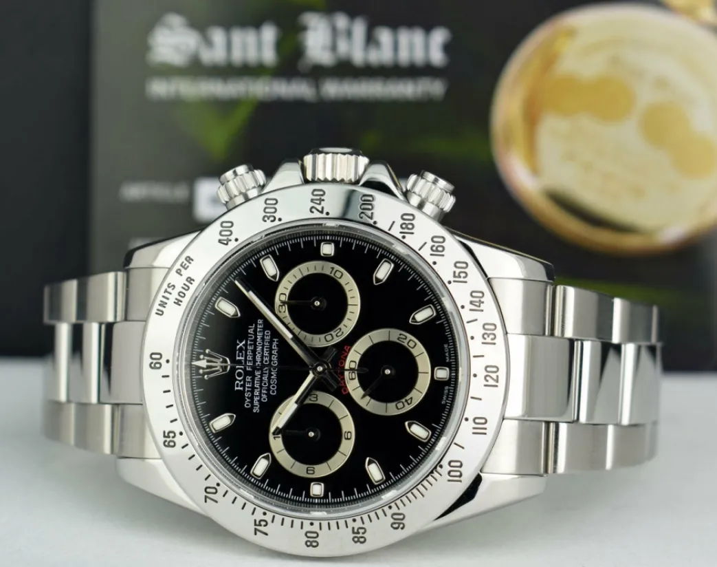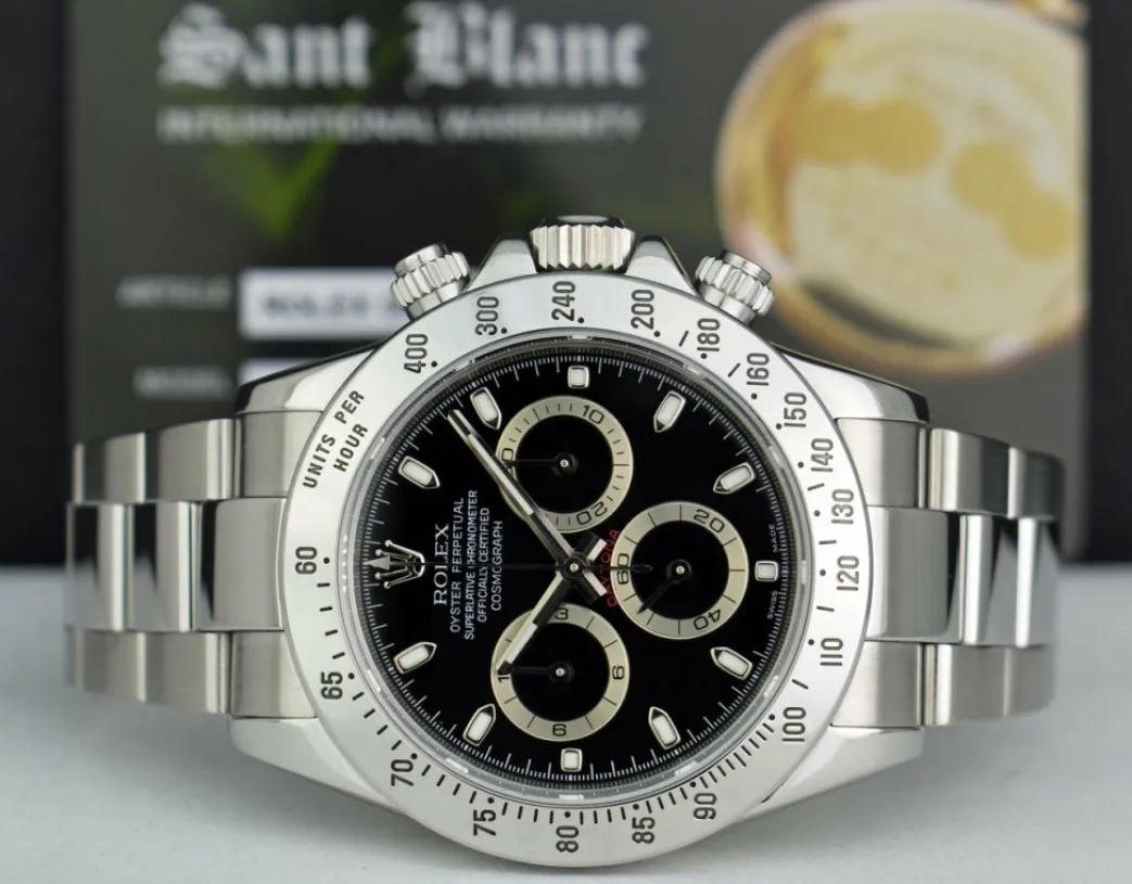 Absolutely Stunning brilliant Rolex Factory Black Index Dial! This is the 40mm size Stainless Steel Rolex Daytona model 116520: This is the style with the Rolex Stainless Steel bracelet. This Rolex is in pristine condition…Priced to sell immediately!