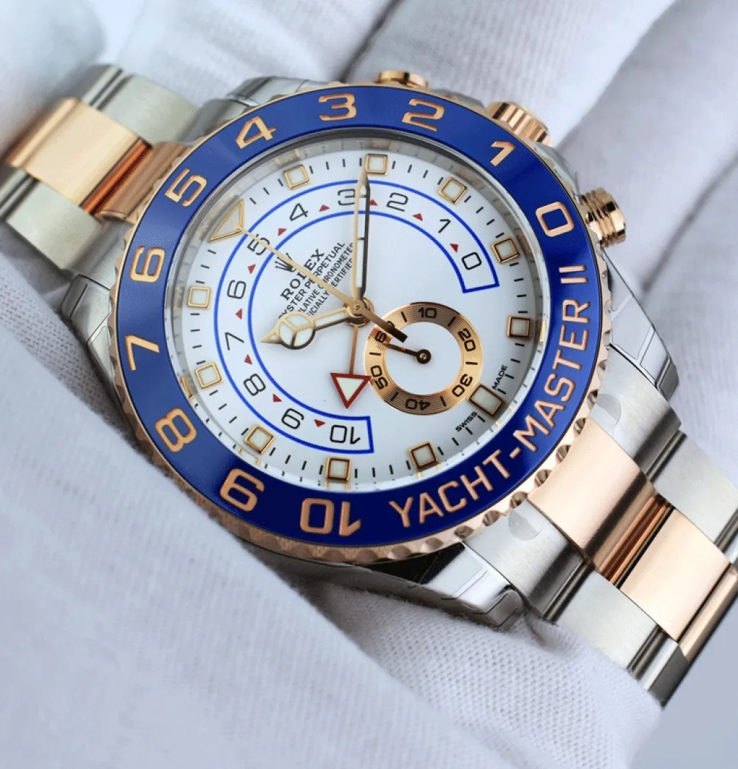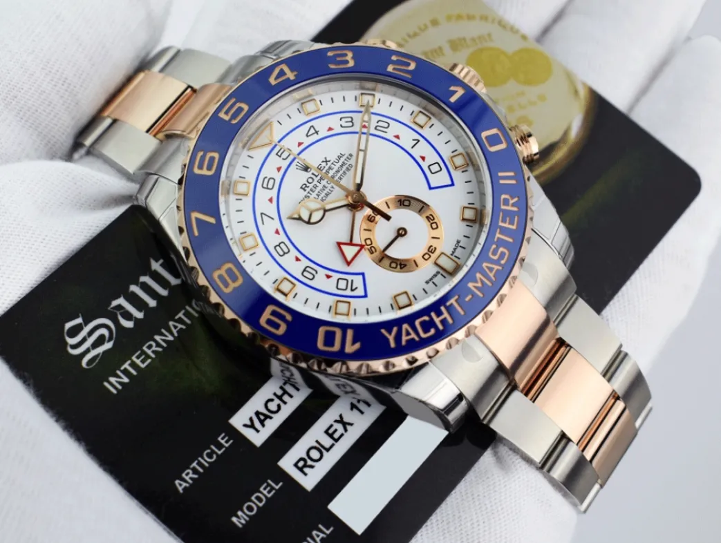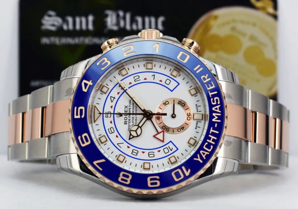 2019 ROLEX – Absolutely Stunning Rolex YachtMaster II with the brilliant White Dial! This is the 44mm size Rolex Yacht-Master II model 116681: This is the style with the Rolex 18kt Rose Gold & Stainless Steel bracelet, Oyster-lock safety clasp and 5 mm comfort extension link. It has the 90 degree rotating command bezel with a blue Cerachrom insert. This Rolex is Water resistant up to 100 meters. This Rolex is in pristine condition…Priced to sell immediately!