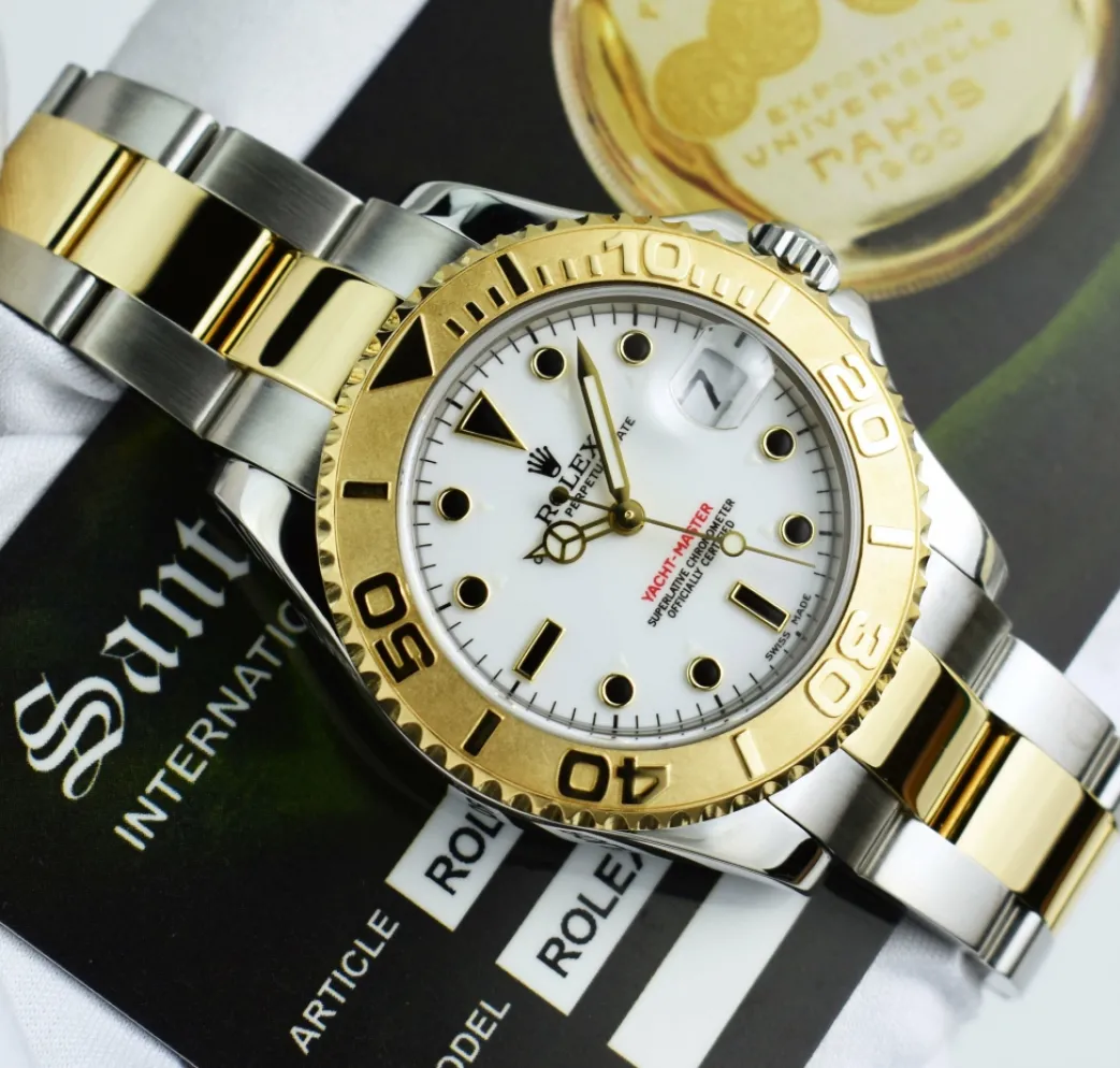 THE PERFECT GIFT!!! Absolutely stunning! Brilliant Rolex White Dial! This is the Rolex 35mm 18kt Gold & Stainless Steel Mid-Size Yachtmaster model 168623: This is the style with the Rolex 18kt Gold & Stainless Steel Oyster bracelet. To replace this Rolex has an estimated MSRP of $11,350. This Rolex is in pristine condition…Priced to sell immediately!